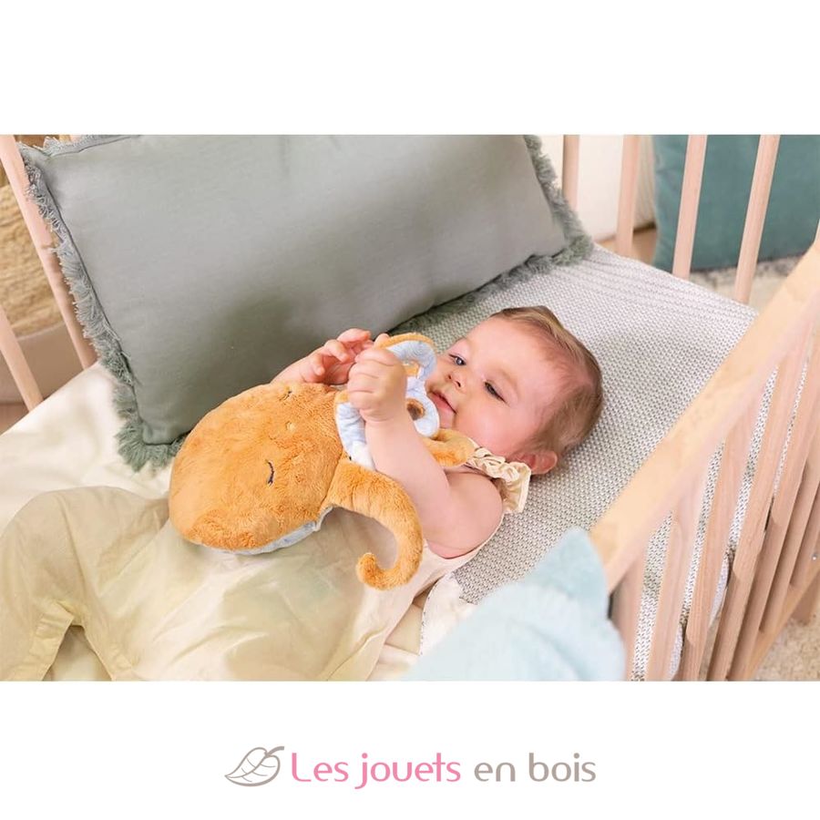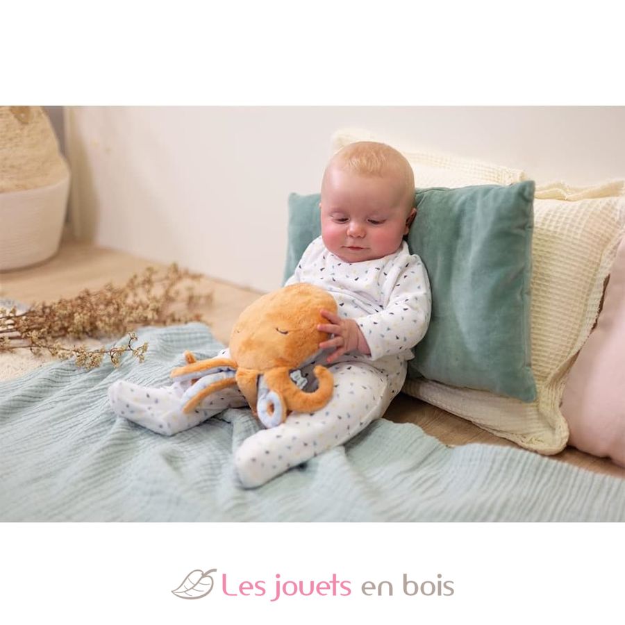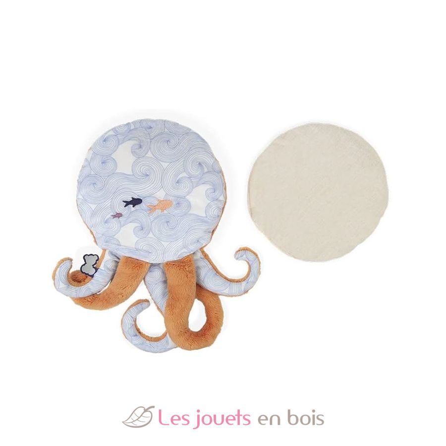 Das Oktopus Wohlfühl Kuscheltier ist das ideale Kuscheltier, um kleinere Beschwerden zu lindern. Dieser Plüsch ist abnehmbar und enthält eine herausnehmbare Tasche. Der mit Tongranulat und Lavendelblüten gefüllte Beutel kann für eine warme bzw. kalte Wirkung in die Mikrowelle oder in das Gefrierfach gelegt werden. Der Zugang zum Beutel ist durch einen Klettverschluss gesichert. Aus ganz weichem, Plüsch wird das Plüschtier Baby Linderung und Entspannung verschaffen.Seine Rückseite ist mit einem „Wellentanz“-Motiv bedruckt, das mit Fischen bestickt ist, die an die Stille der Meerestiefen erinnern. Dieses Plüschtier wird das Baby mit einer Woge von Zärtlichkeit und Behaglichkeit verwöhnen. Seine große Größe ist ideal, um Ihrem Kind im Bett Wärme zu spenden und es zu beruhigen. Ohne Tasche wird der Plüschtintenfisch Baby mit seinen niedlichen Tentakeln umarmen und sein bester Kuschel-Freund werden. Das Wärmekissen hat viele wohltuende Wirkungen, so lindert es vorübergehend Schmerzen. Lavendel hilft dank seiner beruhigenden und besänftigenden Wirkung beim Einschlafen. Bitte entfernen Sie den Beutel vor der Wäsche in der Waschmaschine. Gebrauchsanweisung befindet sich im Inneren des Plüschtiers. Maße : 29 cm x 17 cm.