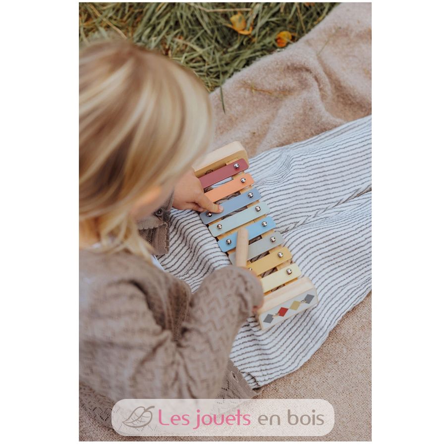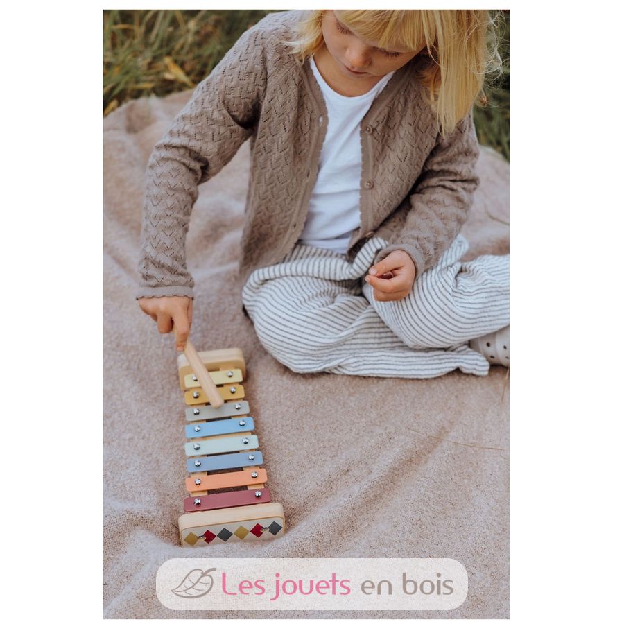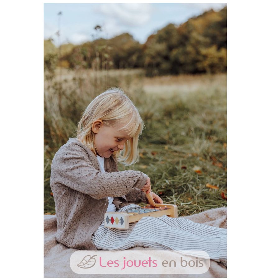 Das Xylophon lädt dazu ein, Musik spielerisch zu entdecken. Mit den beiliegenden Schlägeln kann das Kind die verschiedenen Töne erkunden und eigene Melodien erfinden.