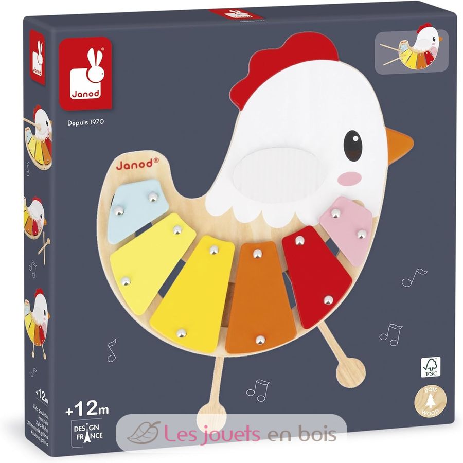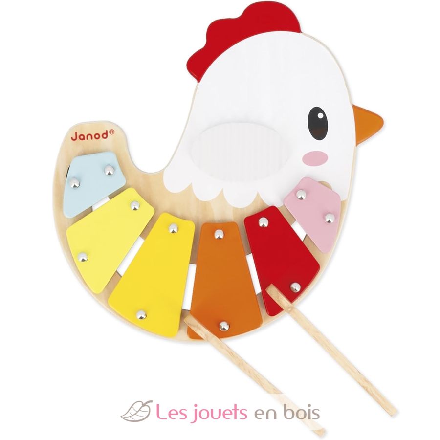 Xylophon Huhn, ein musikalisches Spielzeug für Kinder der Marke Janod. Referenz J03335.