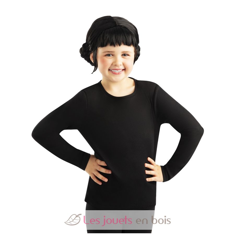 Die Zoey-Perücke besteht aus schwarzem Haar mit Pony und 2 seitlichen Duttfrisuren.