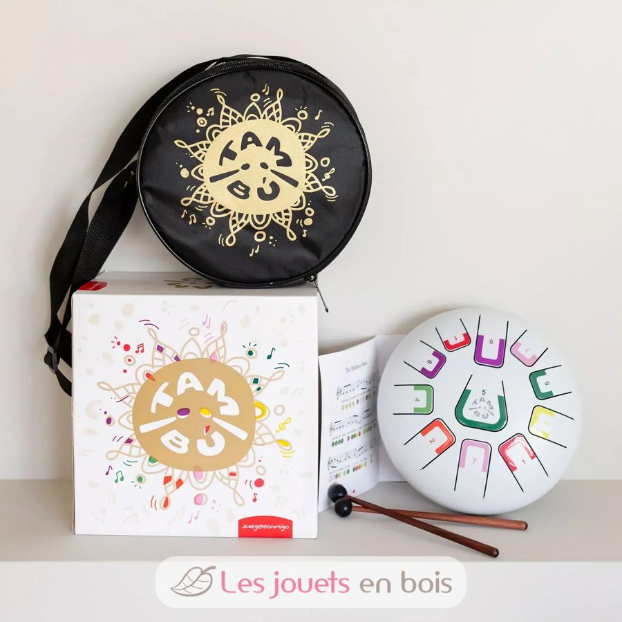 Das Tambú wird mit nummerierten und farbigen Partituren geliefert, die für Anfänger sehr leicht zu interpretieren sind. Dank ihrer Farb- und Digitalkodierung ermöglicht die Tambú-Zungentrommel das Erschaffen zauberhafter Melodien ohne musikalische Vorkenntnisse. Diese Einfachheit ermöglicht es Kindern und Erwachsenen, Musik vom ersten Moment an zu genießen.