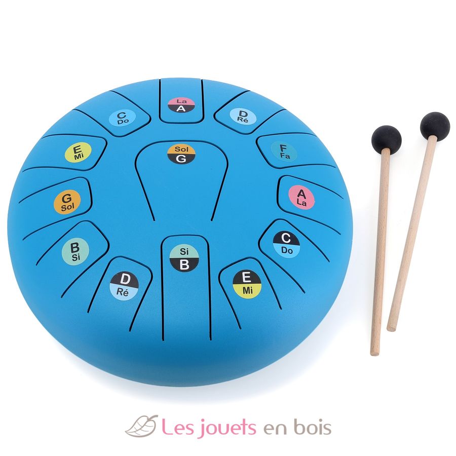 Sie hat einen Durchmesser von 25 cm und wird mit zwei Trommelstöcken sowie 14 speziell für dieses Instrument komponierten Noten geliefert. So können Kinder auch ohne musikalische Vorkenntnisse eine Vielzahl beruhigender und intuitiver Melodien spielen.